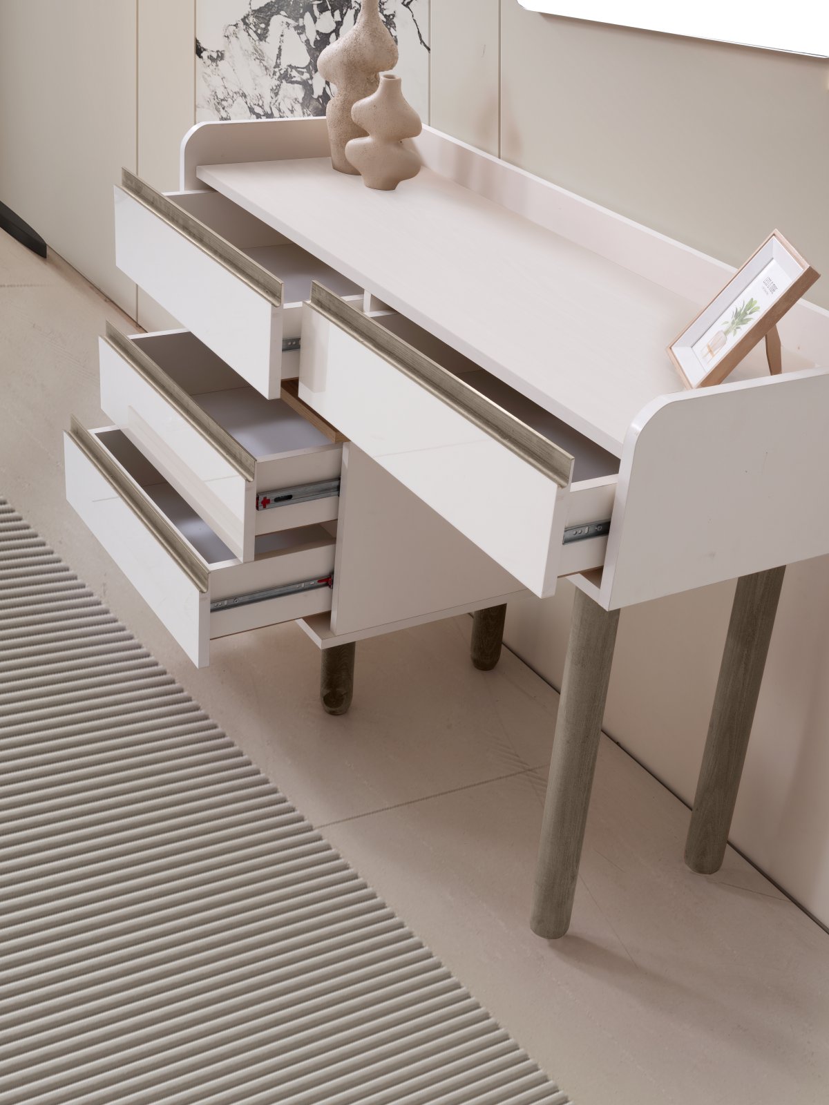 İlk bakışta sakin, yakından incelendiğinde detaylıdır. Modern çizgilerle tasarlanan bu takım, hem estetik görünüm hem de fonksiyonel kullanım sunar.
